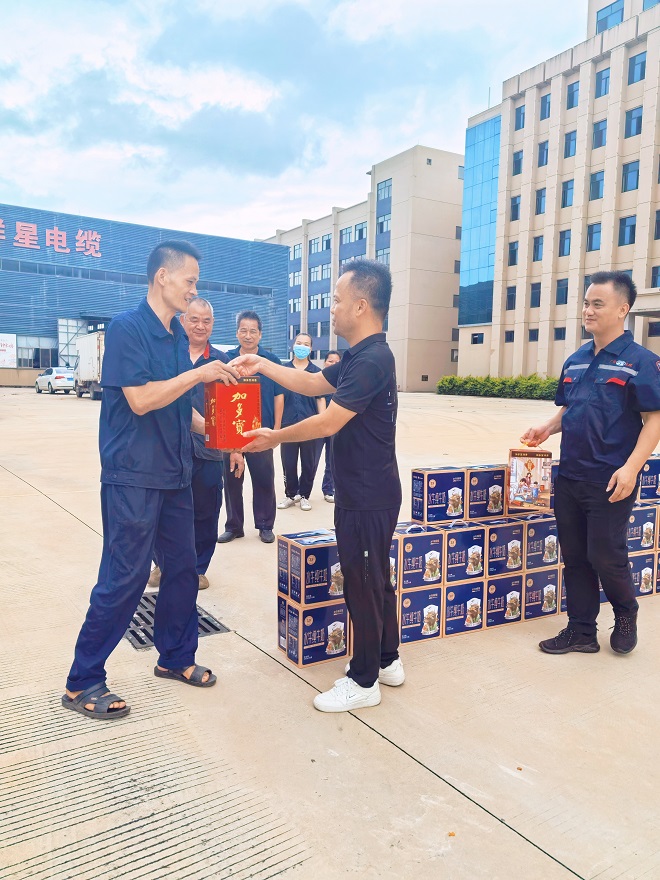 總工會(huì)領(lǐng)導(dǎo)一行深入生產(chǎn)一線,為高溫下堅(jiān)守崗位的員工送去防暑降溫物資,包括清涼飲料、牛奶等,并叮囑大家注意勞逸結(jié)合,做好防暑措施。